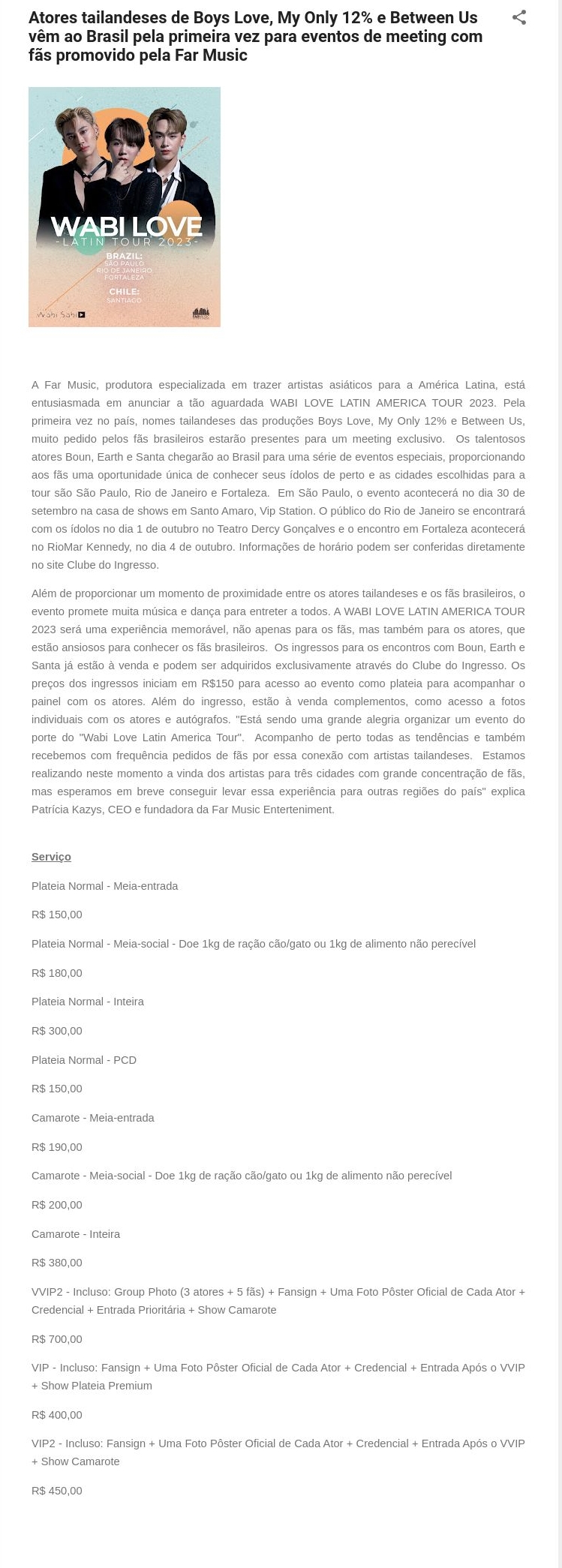 Atores tailandeses de Boys Love, My Only 12% e Between Us vêm ao Brasil pela primeira vez para eventos de meeting com fãs promovido pela Far Music