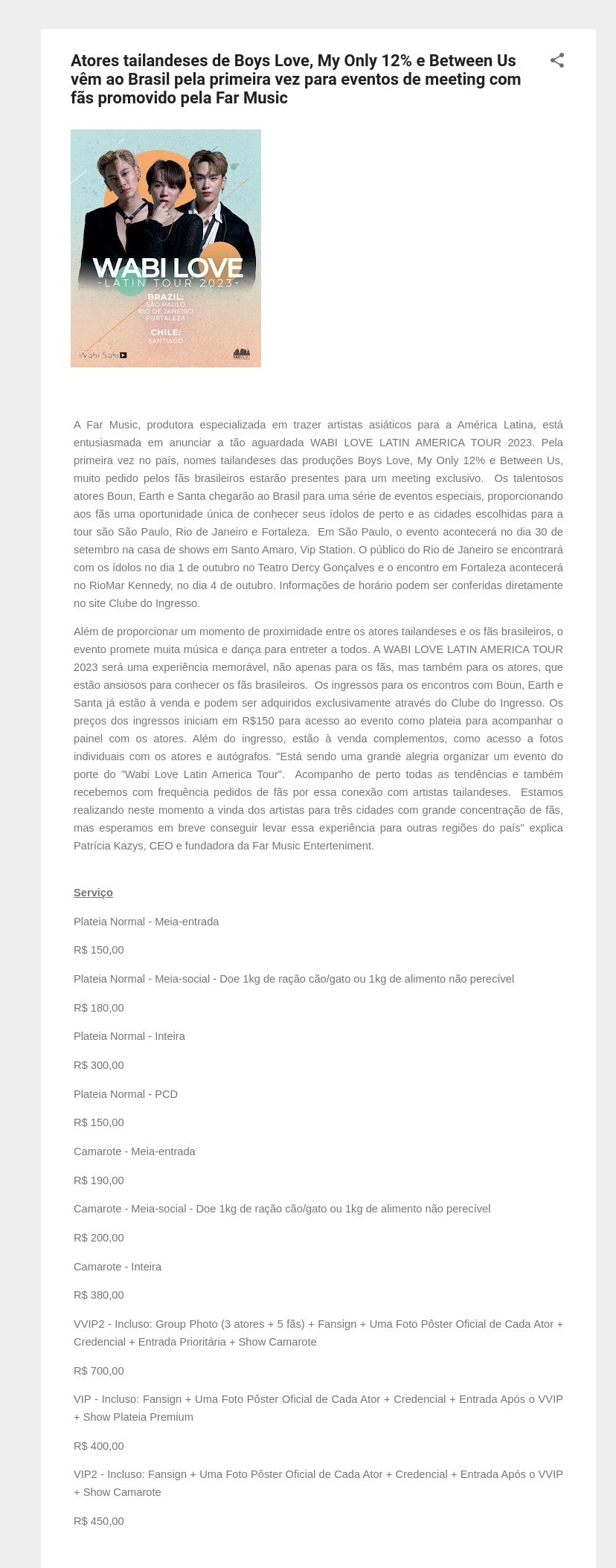 Atores tailandeses de Boys Love, My Only 12% e Between Us vêm ao Brasil pela primeira vez para eventos de meeting com fãs promovido pela Far Music