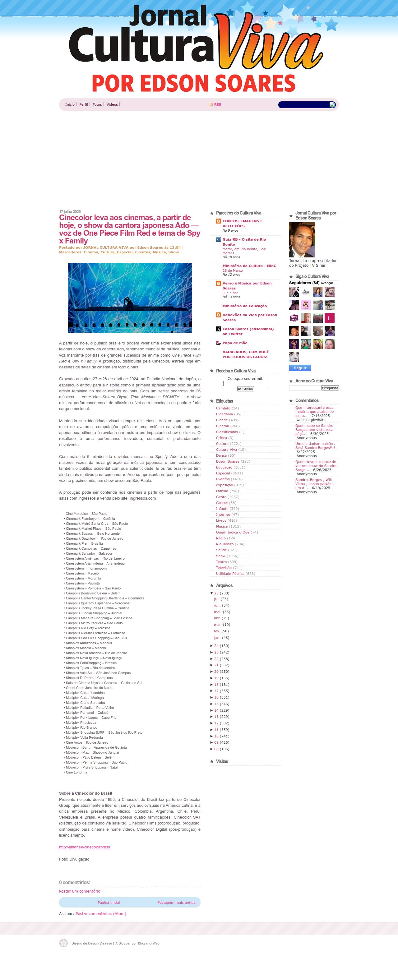 17/07/2025 - Jornal Cultura Viva Por Edson Soares