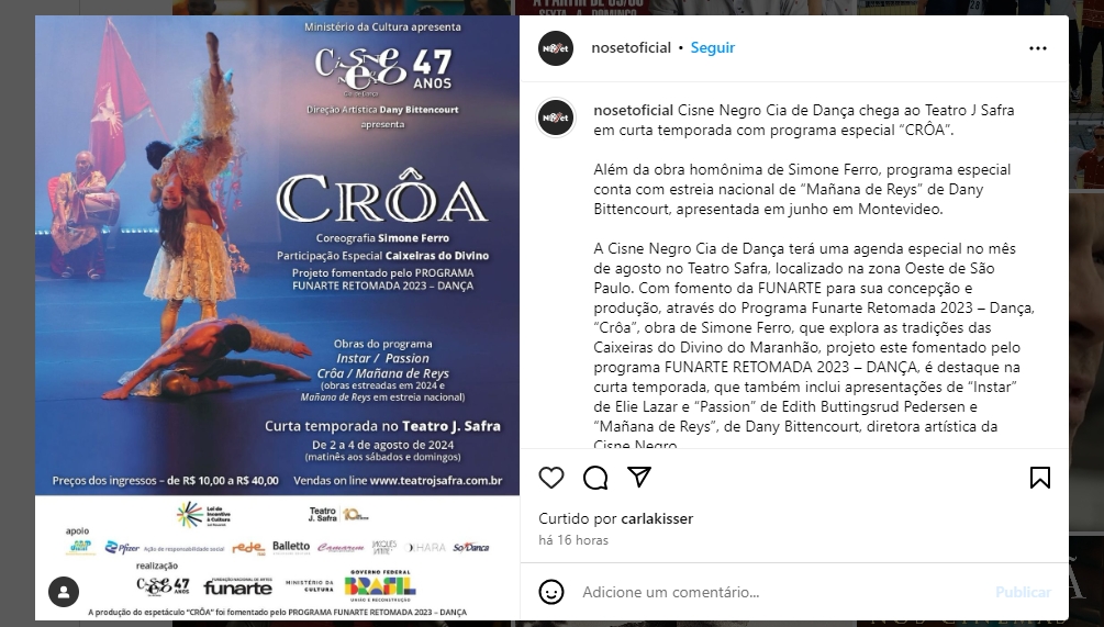Cisne Negro Cia de Dança chega ao Teatro J Safra em curta temporada com programa especial "CRÔA"