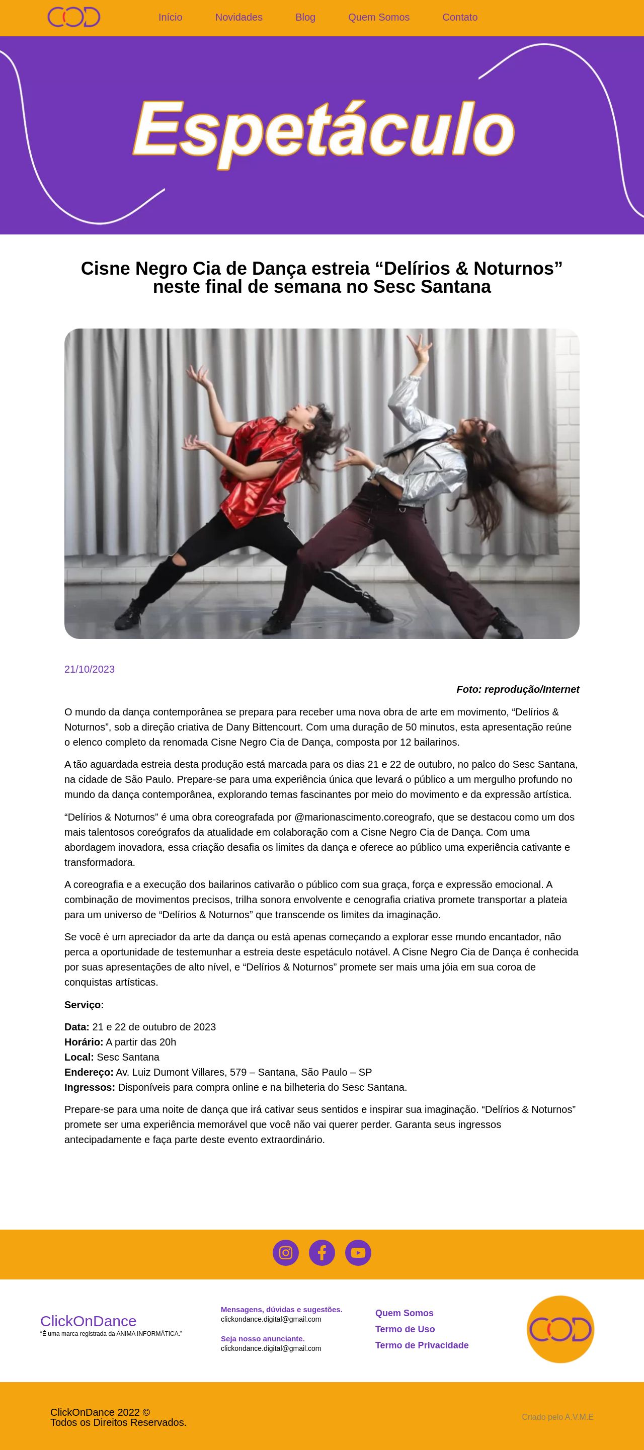 Cisne Negro Cia de Dança estreia "Delírios & Noturnos" neste final de semana no Sesc Santana - ClikOnDance - Noticias da Dança em um Clique!