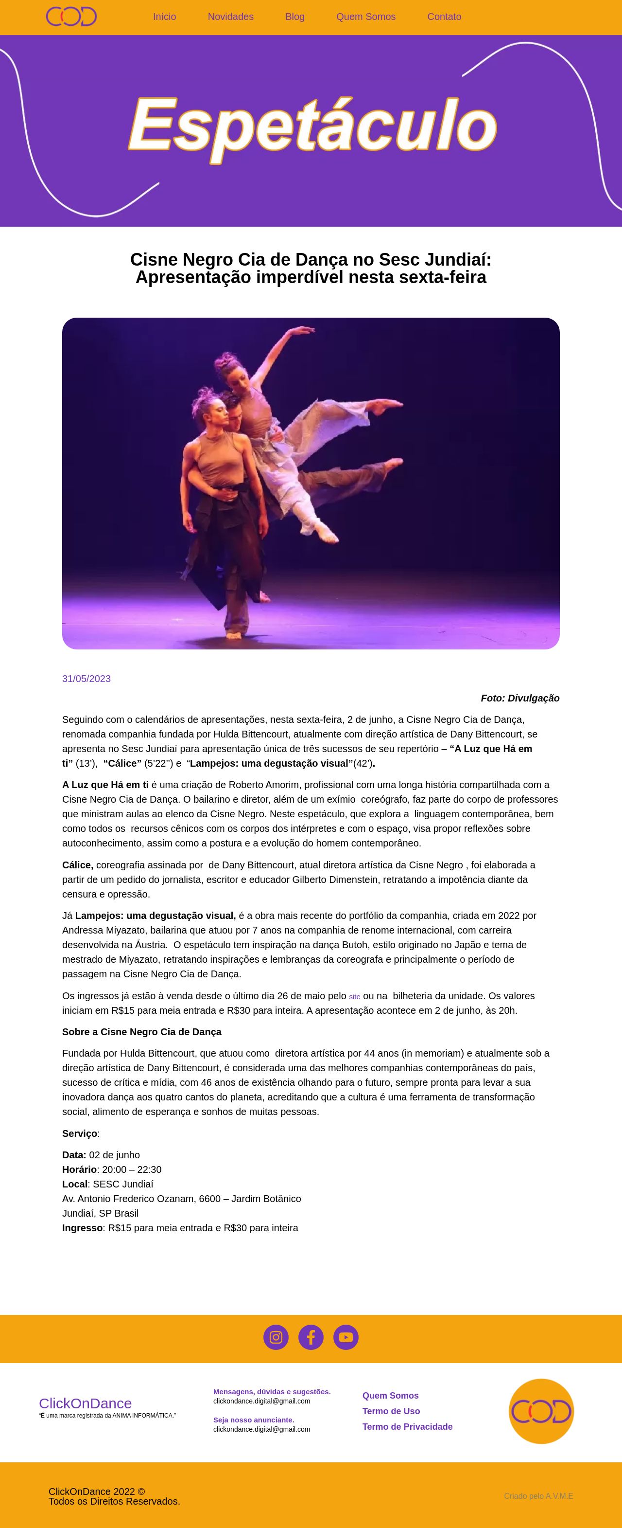 Cisne Negro Cia de Dança no Sesc Jundiaí: Apresentação imperdível nesta sexta-feira - ClickOnDance