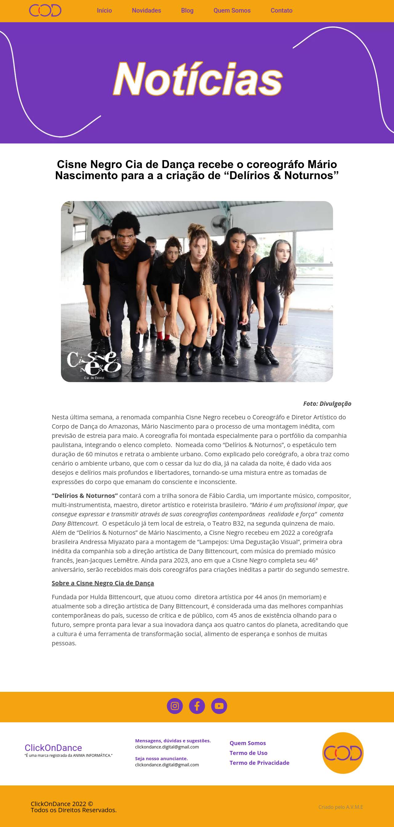 Cisne Negro Cia de Dança recebe o coreográfo Mário Nascimento para a a criação de "Delírios & Noturnos" - ClickOnDance