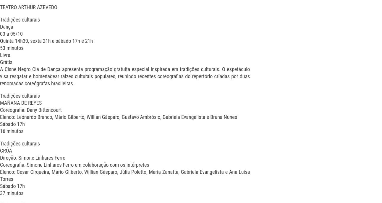 Cisne Negro leva programação gratuita especial inspirada em tradições culturais ao Teatro Arthur Azevedo