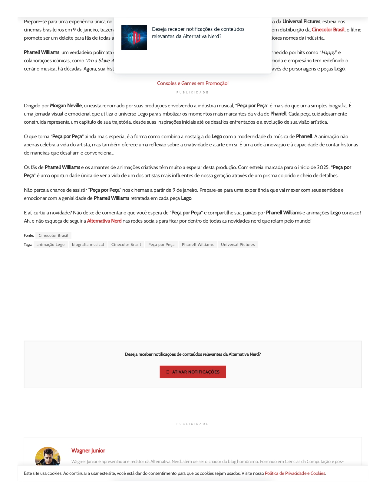 https://alternativanerd.com.br/filmes/peca-por-peca-animacao-de-pharrell-williams-estreia-em-janeiro/#:~:text=Com%20distribui%C3%A7%C3%A3o%20da%20Cinecolor%20Brasil,uma%20carreira%20repleta%20de%20sucessos.