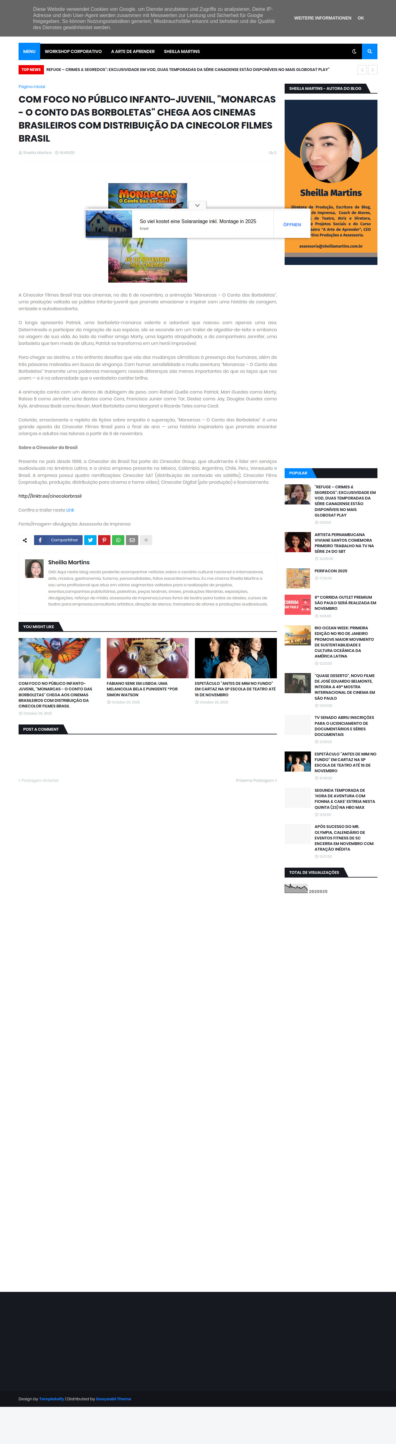 COM FOCO NO PÚBLICO INFANTO-JUVENIL, "MONARCAS - O CONTO DAS BORBOLETAS" CHEGA AOS CINEMAS BRASILEIROS COM DISTRIBUIÇÃO DA CINECOLOR FILMES BRASIL