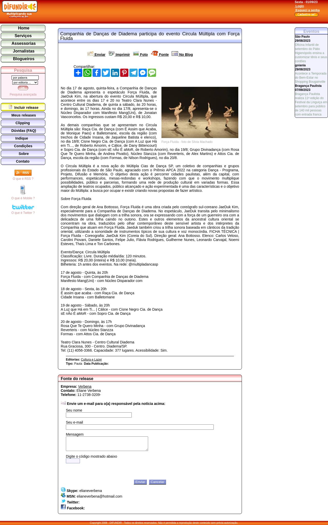 DIFUNDIR - Release: Companhia de Danças de Diadema participa do evento Circula Múltipla com Força Fluida