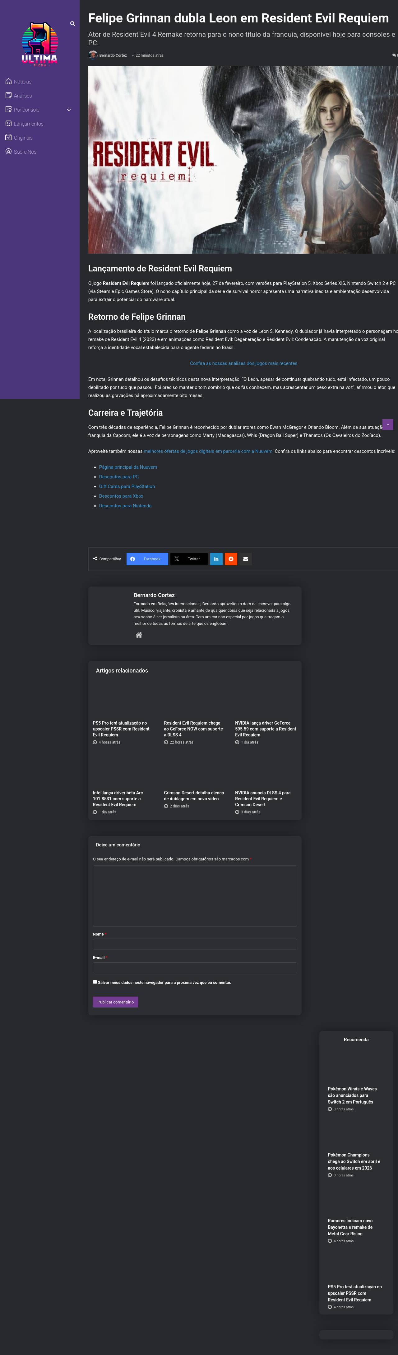 https://ultimaficha.com.br/2026/02/27/felipe-grinnan-dubla-leon-resident-evil-requiem