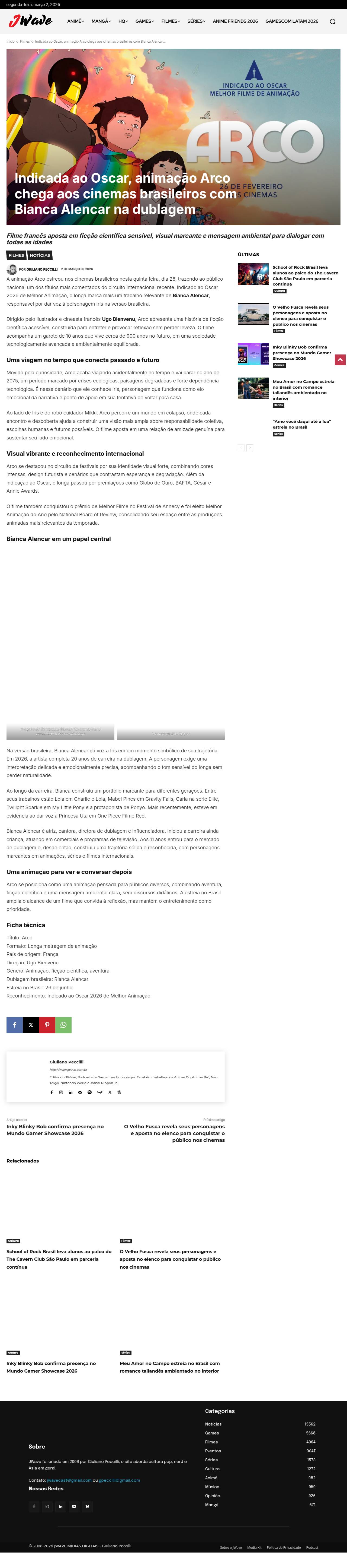 https://www.jwave.com.br/2026/03/indicada-ao-oscar-animacao-arco-chega-aos-cinemas-brasileiros-com-bianca-alencar-na-dublagem