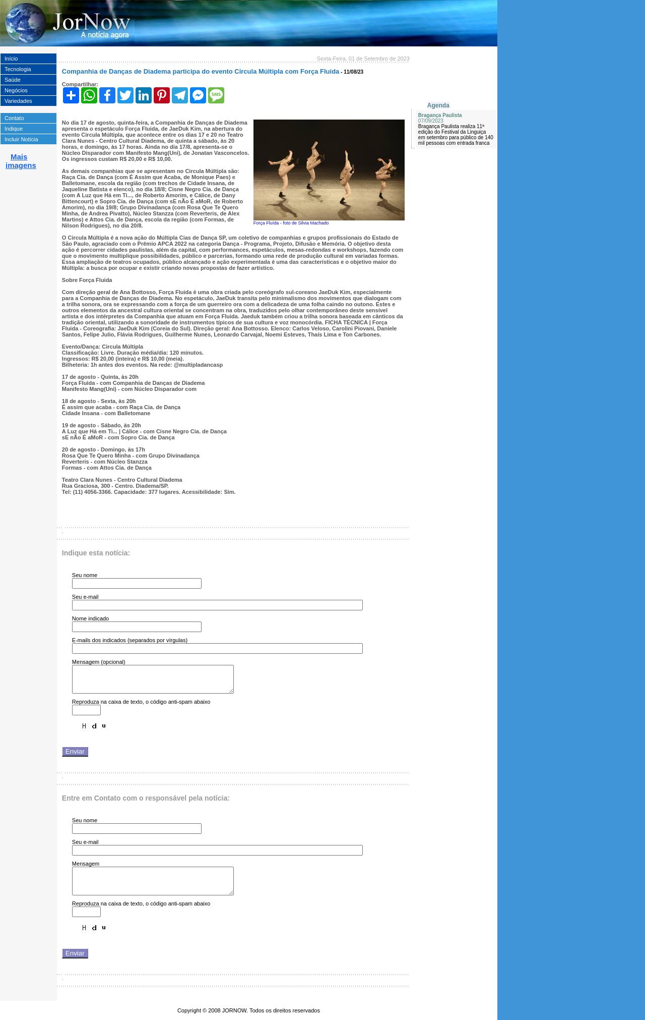 JorNow - Notícia: Companhia de Danças de Diadema participa do evento Circula Múltipla com Força Fluida