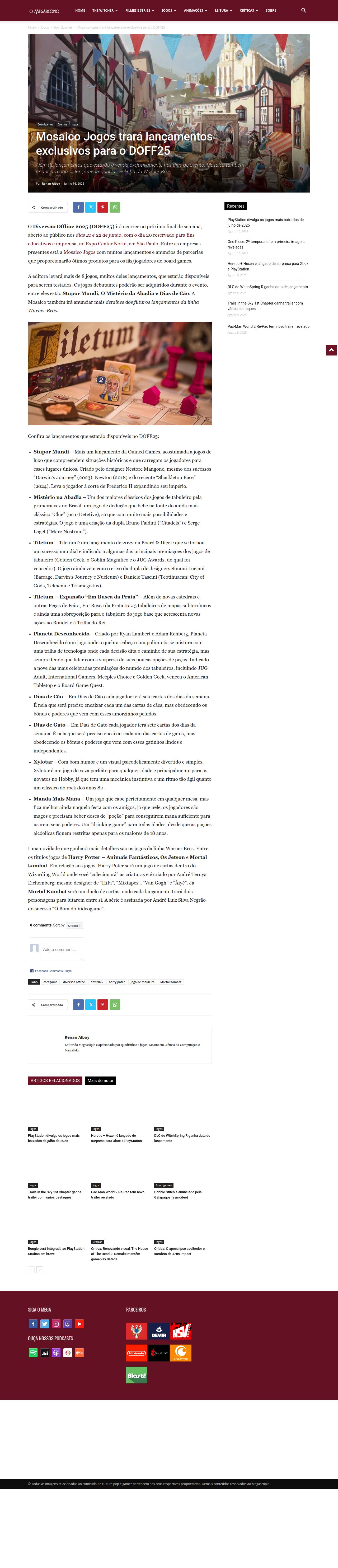 Mosaico Jogos trará lançamentos exclusivos para o DOFF25 - O Megascópio