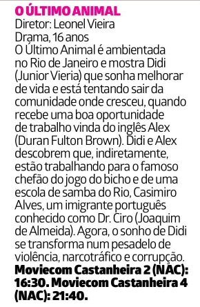 O ÚLTIMO ANIMAL Diretor: Leonel Vieira Drama, 16 anosO Último Animal é ambientada no Rio de Jan...