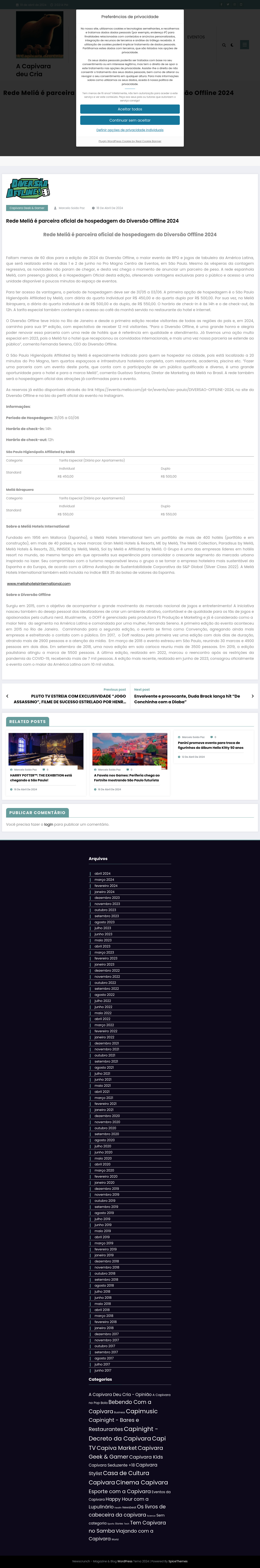 Rede Meliá é parceira oficial de hospedagem do Diversão Offline 2024 - A Capivara deu Cria