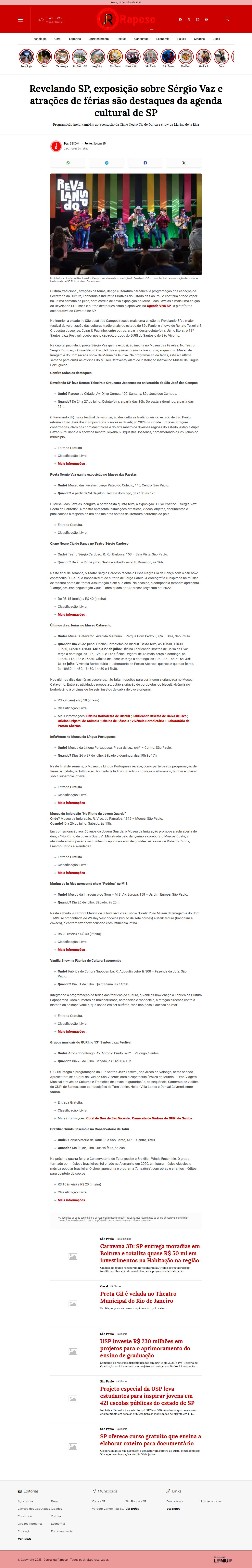 https://jornaldaraposo.com.br/noticia/13819/revelando-sp-exposicao-sobre-sergio-vaz-e-atracoes-de-ferias-sao-destaques-da-agenda-cultural-de-sp