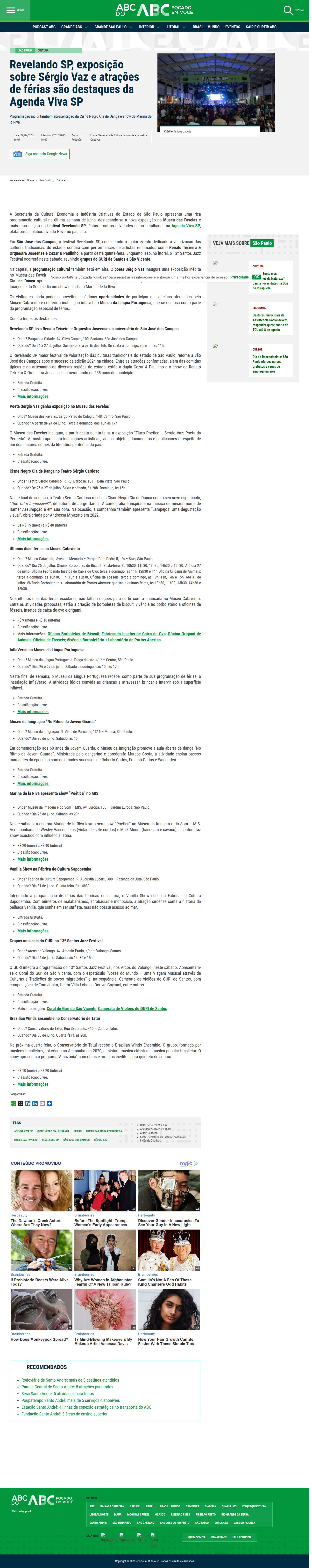 Revelando SP, exposição sobre Sérgio Vaz e atrações de férias são destaques da Agenda Viva SP
