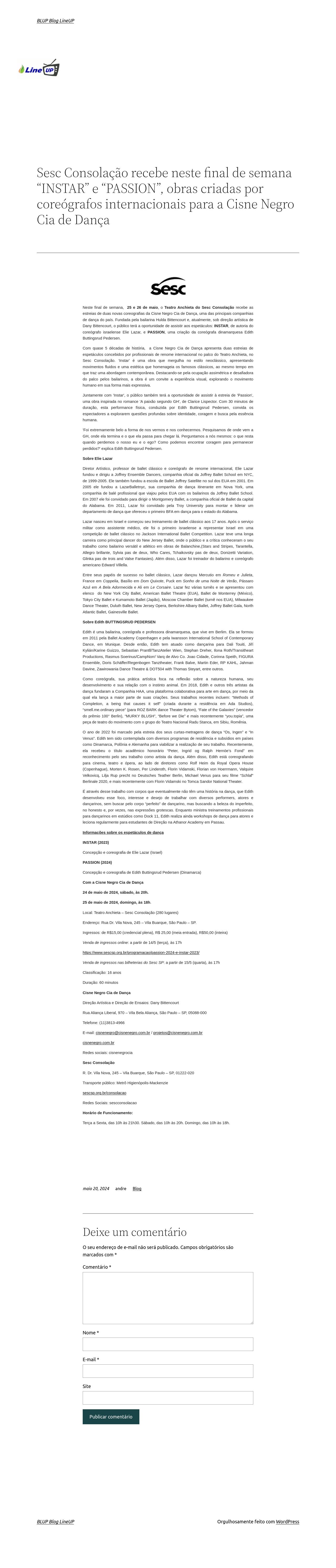 Sesc Consolação recebe neste final de semana "INSTAR" e "PASSION", obras criadas por coreógrafos internacionais para a Cisne Negro Cia de Dança - BLUP